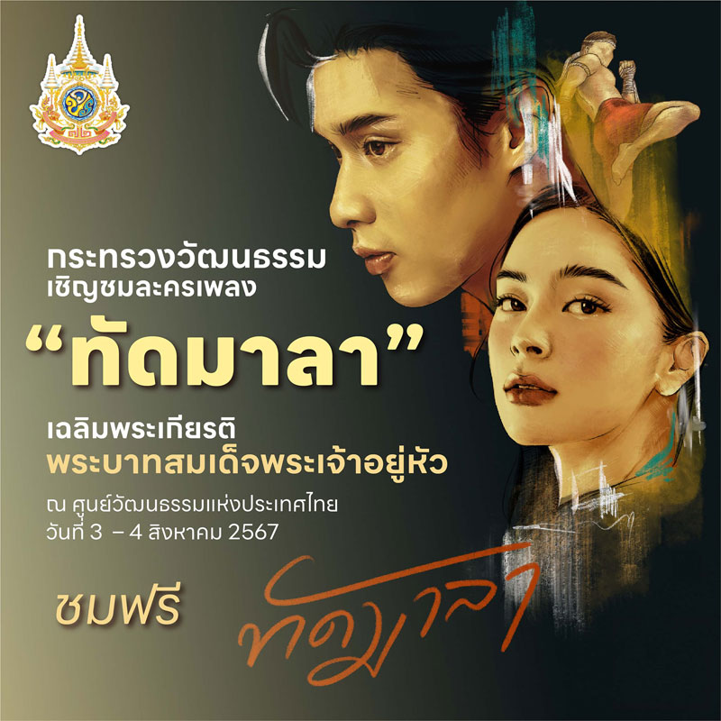 สำหรับการจัดการแสดงละครเพลง “ทัดมาลา” จัดโดย กรมส่งเสริมวัฒนธรรม กระทรวงวัฒนธรรม (วธ.) ร่วมกับมูลนิธิธรรมไทย จัดการแสดงละครเพลง “ทัดมาลา” เพื่อเฉลิมพระเกียรติพระบาทสมเด็จพระเจ้าอยู่หัว เนื่องในโอกาสพระราชพิธีมหามงคลเฉลิมพระชนมพรรษา 6 รอบ 28 กรกฎาคม 2567 ซึ่งนำวรรณกรรมรักอมตะระดับโลกอย่างโรมิโอและจูเลียต (Romeo and Juliet) ของวิลเลียม เชกสเปีย ผสมผสานเข้ากับศิลปะการต่อสู้มวยไทย สร้างสรรค์บทประพันธ์คำร้อง ประพันธ์และเรียบเรียงบทเพลง และดนตรีร่วมสมัยผสมผสานกับดนตรีไทย ในรูปแบบการแสดงละครเพลง The Musical
