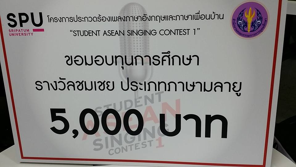 รับทุนการศึกษา 5,000 บาทและ 10,000 บาท จากโครงการประกวดร้องเพลงภาษาอังกฤษและภาษาเพื่อนบ้าน (Student Asean Singing Contest1)