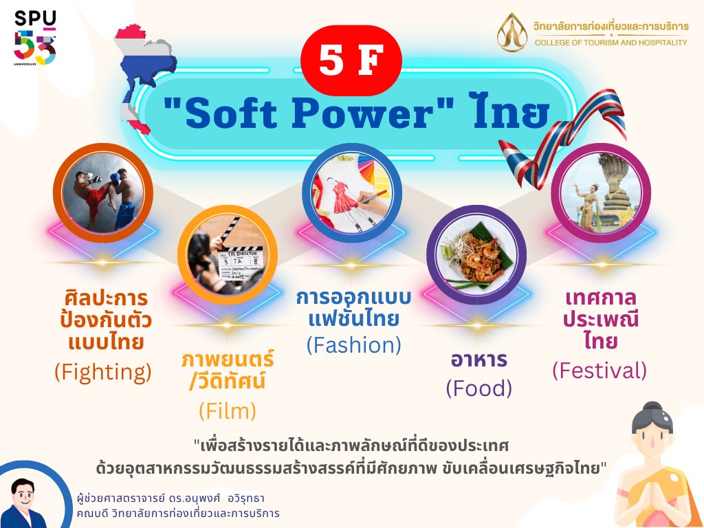 โดยกำหนดนโยบายมุ่งส่งเสริมวัฒนธรรม 5 F ที่เป็น Soft Power ของไทย