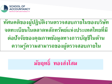 ทัศนคติของผู้ปฏิบัติงานตรวจสอบภายในของบริษัทจดทะเบียนในตลาดหลักทรัพย์แห่งประเทศไทยที่มีต่อปัจจัยของคุณภาพข้อมูลทางการบัญชีในด้านความรู้ความสามารถของผู