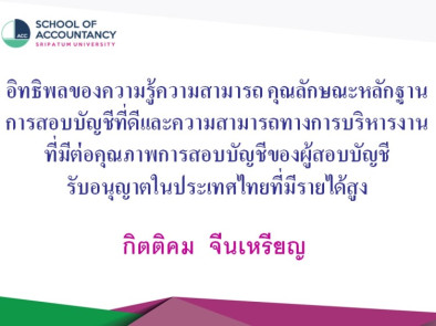 อิทธิพลของความรู้ความสามารถ คุณลักษณะหลักฐานการสอบบัญชีที่ดีและความสามารถทางการบริหารงานที่มีต่อคุณภาพการสอบบัญชีของผู้สอบบัญชีรับอนุญาตในประเทศไทยที่