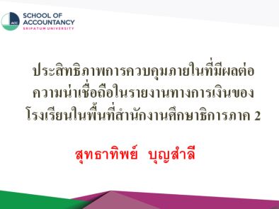 ประสิทธิภาพการควบคุมภายในที่มีผลต่อความน่าเชื่อถือในรายงานทางการเงินของโรงเรียนในพื้นที่สำนักงานศึกษาธิการภาค 2