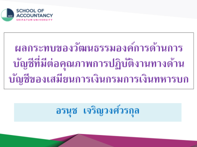 ผลกระทบของวัฒนธรรมองค์การด้านการบัญชีที่มีต่อคุณภาพการปฏิบัติงานทางด้านบัญชีของเสมียนการเงินกรมการเงินทหารบก