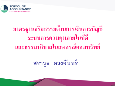 มาตรฐานจริยธรรมด้านการเงินการบัญชี ระบบการควบคุมภายในที่ดีและธรรมาภิบาลในสหกรณ์ออมทรัพย์