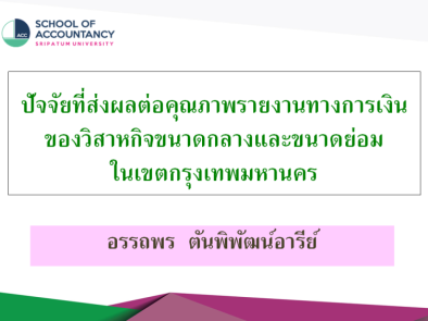 ปัจจัยที่ส่งผลต่อคุณภาพรายงานทางการเงินของวิสาหกิจขนาดกลางและขนาดย่อมในเขตกรุงเทพมหานคร