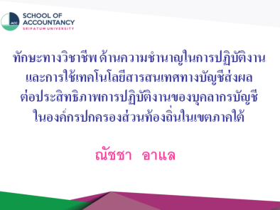 ทักษะทางวิชาชีพ ด้านความชำนาญในการปฏิบัติงานและการใช้เทคโนโลยีสารสนเทศทางบัญชีส่งผลต่อประสิทธิภาพการปฏิบัติงานของบุคลากรบัญชีในองค์กรปกครองส่วนท้องถิ่