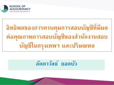 อิทธิพลของการควบคุมการสอบบัญชีที่มีผลต่อคุณภาพการสอบบัญชีของสำนักงานสอบบัญชีในกรุงเทพฯ และปริมณฑล
