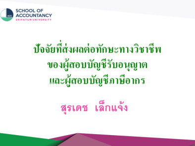 ปัจจัยที่ส่งผลต่อทักษะทางวิชาชีพของผู้สอบบัญชีรับอนุญาตและผู้สอบบัญชีภาษีอากร
